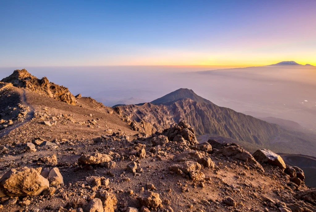 After a full breakfast with a great view of Kilimanjaro to the east, it is time to trek up to the Saddle on Mount Meru. The vegetation starts to change as height is gained; we emerge from the forest and eventually arrive at Saddle Hut. It is time for lunch, followed by a short ascending on Little Meru in the afternoon for extra acclimatization. After soaking up the view its back to the Saddle Hut to prepare for our first big day, Meru summit. It is important to get some sleep at this point, which is sometimes easier than to be done during the early hours. Dinner and Overnight: Saddle Huts – (FB)