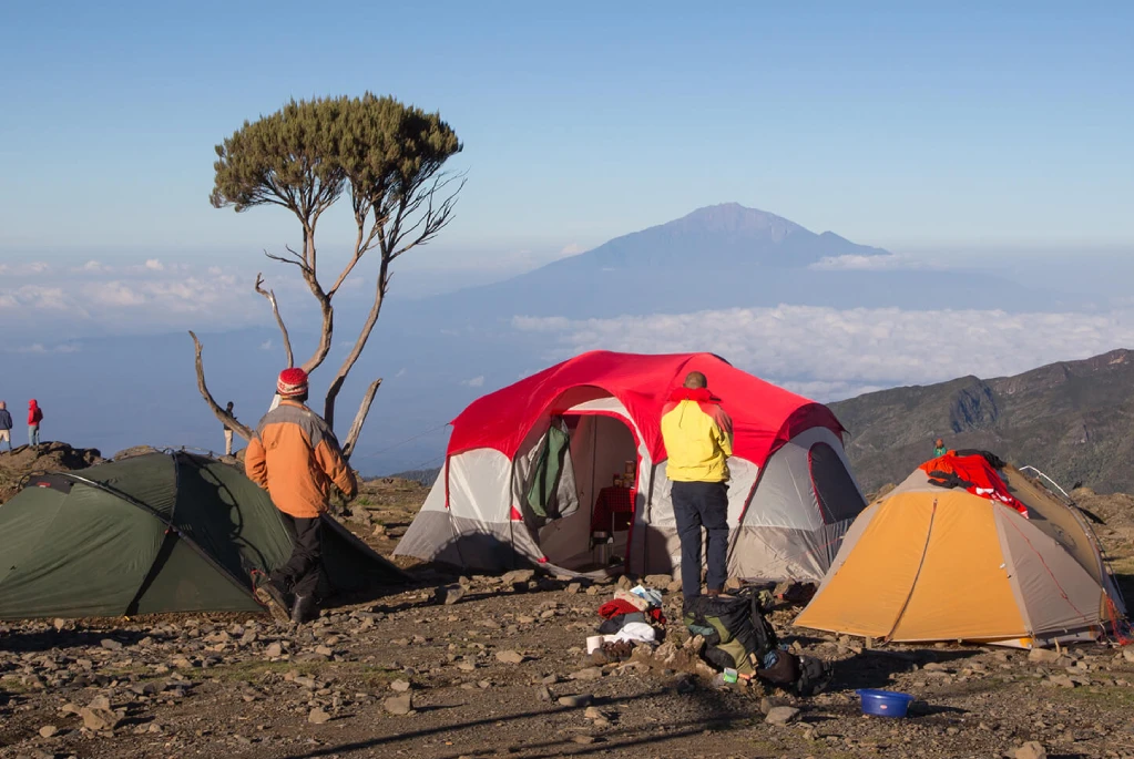 On this and subsequent mornings, wake-up call is at around 6:00 AM. You will be greeted with a steaming cup of tea or coffee, (and on the favour of weather), by a fabulous view of Uhuru peak. Today’s trek takes you up a steep track through a savannah of tall grasses, volcanic rock, and bearded heather. You will encounter giant groundsels as you hike through a ghostly landscape of volcanic lava, caves, and foamy streams. Lunch will be taken just below the Shira Plateau, about three to four hours from Shira Camp. The hike to the next campsite takes approximately six hours and you should arrive between 2:00 PM and 3:00 PM. Most climbers tend to pace themselves, walking slowly and resting about every half-hour. On arrival in camp, there is time to relax and even so for an acclimatization hike with your guides before dinner. Overnight at Shira Camp. (FB)