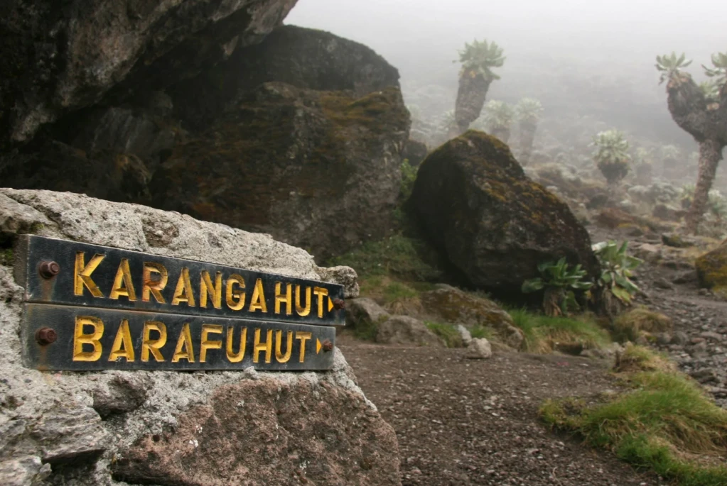After breakfast you will cross the Great Barranco Wall, topping out at about 4 420 m before dropping to the camp at the Karanga River at about 4040 m. The hike up the Barranco Wall is steep. You pass below the famous Breach Wall, the largest ice and rock face in Africa. The Breach Wall climbing route, known as ‘The Icicle’, was first climbed in the early 1970’s by Reinhold Messner. Daytime temperatures can reach up to 26C, while evening temperatures often drop below freezing point. Dinner and overnight at Karanga Camp (FB)