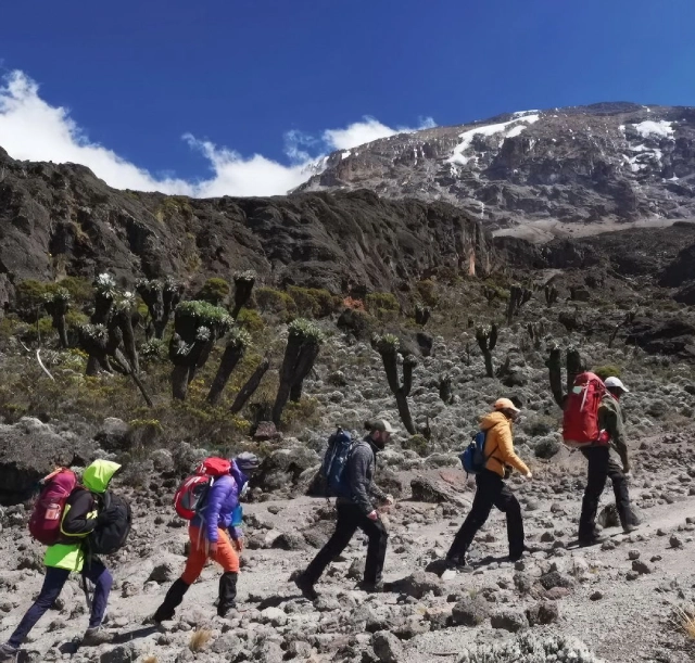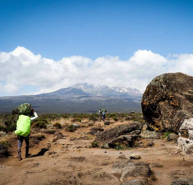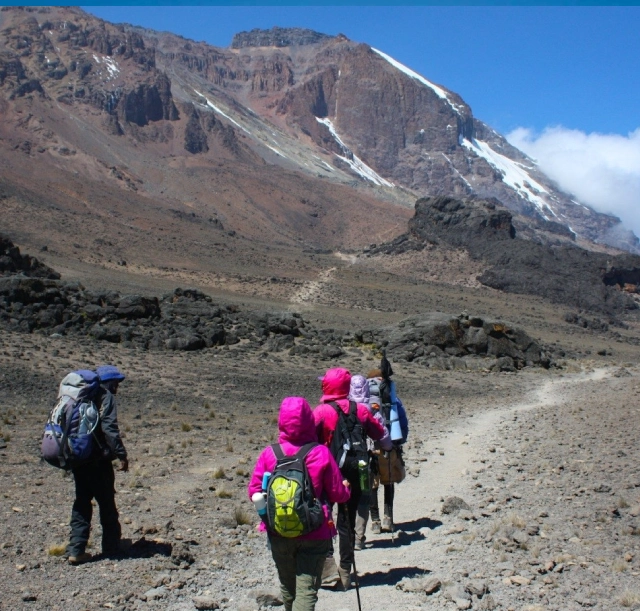 After breakfast, you will start the climb cross the remaining rain forest towards the giant moorland zone. Today is a full day trek with an altitude gain of 2,000 ft. A great lunch stop is at the beautiful valley just outside the Shira Crater at around 10,000 ft. After lunch you will walk to Shira Caldera, a high altitude desert plateau which is rarely visited. Shira is the third of Kilimanjaro’s volcanic cones, and is filled with lava flow from Kibo Peak. The crater rim has been decimated by weather and volcanic action. Today you’ll get your first close views of Kibo – the dramatic summit of Kilimanjaro. Dinner and Overnight: Shira one Camp. (FB)