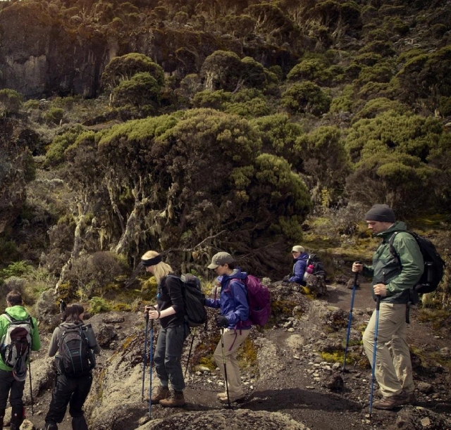 After breakfast, we will depart from our hotel at approximately 8:30 AM for the Machame village with a Lunch box for you to sporadically bite on you trek. From the park entrance gate (Machame), you will walk for about two to three hours trek through a dense forest of fig and rubber trees, begonia flowers, and other tropical vegetation. A stop for lunch will be made halfway to this evening’s campsite. As you continue your ascent, you will find that the tropical forest has given way to tall grasses and giant heather. You will be walking on a ridge, to the left of which is the Semira stream, and on the right, the Weru. Depending on the pace of the climbers, arrival at Machame Camp is usually between 5:00 PM and 6:00 PM. Your camp is set up near some old metals huts, which were once used for shelter. This initial stage of the climb is tranquil and relatively easy. There is no point in rushing to get to the camp, as there is little to do there. Guides tend to recommend a slow ascent, even at this point, for gradual acclimatization. Do not try to keep up with your porters, who will usually bound ahead. Instead, take time to admire the beauty of the afro mountain forest. Overnight: Machame Camp (FB)